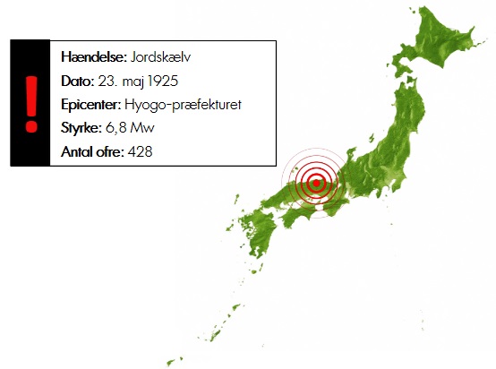 Den 23. maj 1925 blev det nordlige Hyogo-præfektur, der dengang var kendt som Tajima-provinsen, ramt af et jordskælv med en styrke, der målte 6,8 på momentmagnitudeskalaen. Jordskælvet begyndte kort efter klokken 11 om formiddagen, og eftersom der var tale om et såkaldt indlandsjordskælv, så førte det til store ødelæggelser i de nærmeste egne omkring epicentret, som befandt sig 15 kilometer under jordens overflade, så mere end 1500 bygninger endte med at blive lagt i ruiner. Næsten lige så mange brændte dog ned til grunden, for eftersom jordskælvet ramte kort før middagstid, så var der mange, der var i gang med at lave middagsmad, hvilket dengang blev gjort med brug af ild, og da husene samtidig var lavet af træ, så resulterede dette altså i flere store brande.