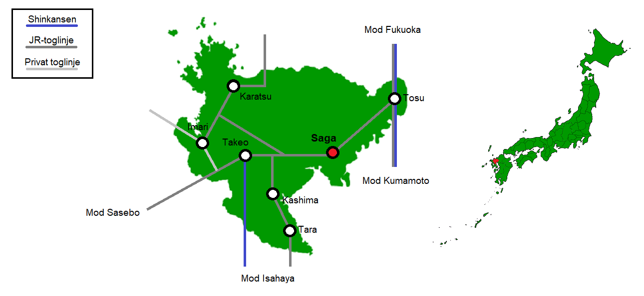 Saga er hovedstaden i præfekturet med samme navn. Der er dog tale om en forholdsvis lille storby, hvor der kun bor et par hundrede tusinde mennesker. Saga har ikke desto mindre en lang historie bag sig, idet området har været befolket siden den japanske stenalder. I dag er byen mest kendt for at lægge grund til en af verdens største varmluftballon-forsamlinger, når Saga International Balloon Fiesta finder sted hvert efterår. Det er blandt andet muligt at komme til Saga med tog fra Nagasaki og Fukuoka, og selvom en shinkansen-linje skulle have åbnet mellem de to byer, så har man i Saga-præfekturet besluttet, at denne indtil videre ikke skal gå igennem Saga by.