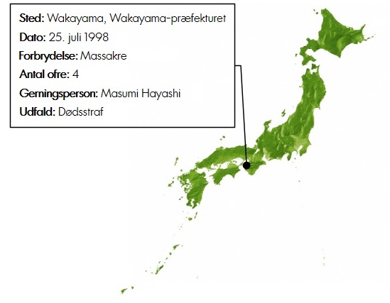 Den 25. juli 1998 blev der holdt en sommerfestival i en bydel i Wakayama, hvilket dog udviklede sig til en lokal tragedie, da 67 mennesker endte med at blive svært syge, så de derfor måtte bringes på hospitalet med symptomer som opkast og mavesmerter, men for fire personers vedkommende var det desværre for sent, idet den 64-årige Takatoshi Taninaka, 53-årige Takaaki Tanaka, 16-årige Miyuki Torii og 10-årige Hirotaka Hayashi endte med at omkomme af organsvigt som følge af det, der umiddelbart kunne tyde på madforgiftning. Det viste sig nemlig, at alle de syge personer havde det tilfælles, at de havde spist af den samme karryret, der blev serveret til festivalen, og denne blev derfor udpeget som synderen.