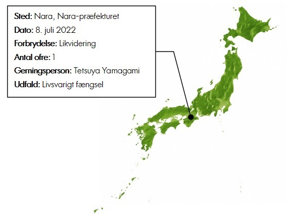 Shinzo Abe fungerede som Japans premierminister i to perioder fra 2006 til 2007 og igen fra 2012 til 2020, hvor han trådte tilbage som premierminister og som formand for det Liberale Demokratiske Parti grundet helbredsproblemer. Han var dermed den længst siddende premierminister i Japans historie og forblev politisk aktiv, indtil hans liv endte brat den 8. juli 2022. På denne dag var Shinzo Abe nemlig på et besøg i Nara i forbindelse med en valgkampagne, og han holdt i den anledning en offentlig tale ved Yamato-Saidaiji station. Men selvom han ellers var omringet af livvagter, så forhindrede dette ham ikke i at blive ramt af et skud, da en af de fremmødte – den 41-årige Tetsuya Yamagami – pludselig valgte at affyre en hjemmelavet pistol, da han befandt sig bag ved Shinzo Abe, imens han var i gang med at holde sin tale foran flere hundrede mennesker, der således blev vidner til det chokerende øjeblik.