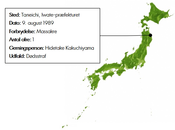 Hidetake Kakuchiyama var en tidligere fisker, som boede i landsbyen Taneichi i Iwate-præfekturet sammen med sin kone, Shizuko, og parrets fire børn: datteren Hisako samt sønnerne Takeshi, Takeru og Shinya. Der var dog ikke tale om et lykkeligt ægteskab, idet Hidetake var voldelig over for sin kone, som derfor ønskede at blive skilt fra ham, så Hidetake derfor frygtede, at hun i den forbindelse ville forlade ham og tage alle fire børn med sig. Da han dermed indså, at han stod over for at miste hele sin familie, valgte han i stedet at udslette den, da han i 1989 dræbte både sin kone og børn.