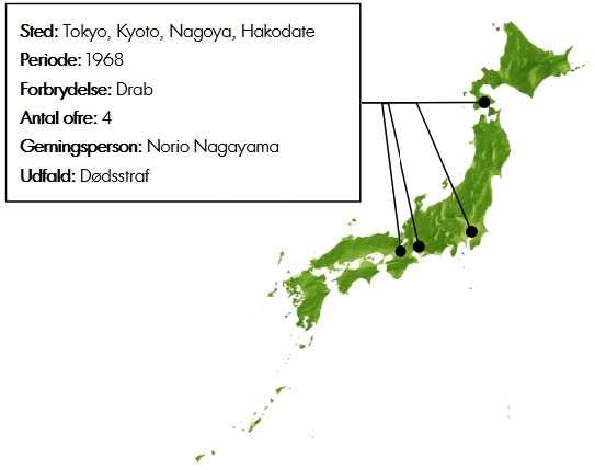 Norio Nagayama var 16 år gammel, da han i 1965 blev vidne til en gidselsituation i Shibuya i Tokyo, hvor gerningsmanden Misao Katagiri åbnede ild mod politiet og de flere tusinde opmødte på gaden. Dette inspirerede Nagayama til tre år senere at begå sine egne forbrydelser, da han som 19-årig tog på et drabstogt rundt omkring i Japan, hvor han slog 4 tilfældige mænd ihjel med en pistol, som han havde stjålet fra en amerikansk flådebase. Det første af disse drab fandt sted den 11. oktober 1968, hvor Nagayama skød en 27-årig vagt på Tokyo Prince Hotel. Tre dage senere var han taget til Kyoto, hvor han skød endnu en vagt - denne gang en 69-årig mand, der patruljerede ved Yasaka-helligdommen. Den 26. oktober var Nagayama så ankommet til Hokkaido, hvor han skød en 31-årig taxachauffør i Hakodate, og det sidste drab fandt sted den 5. november, hvor han skød endnu en taxachauffør - en 22-årig mand i Nagoya. Mens de første to ofre var blevet slået ihjel uden grund, så blev de to sidste dræbt i forbindelse med et røveri. Alle ofre var ikke desto mindre mænd i arbejde.