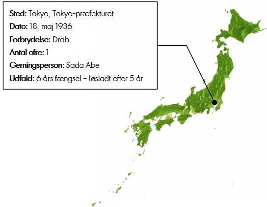 Sada Abe var en japansk prostitueret, som blev født i 1905. Hun blev som 14-årig voldtaget og blev herfra det, man kan kalde for en besværlig teenager med rebelske træk. Det blev til sidst for meget for hendes forældre, der simpelthen valgte at sælge deres datter til et geisha-hus i Yokohama i 1922, hvor hun dog ikke kunne indordne sig efter forholdene. Hun forblev en lavt rangeret geisha, hvor en af de eneste pligter var at yde seksuel omsorg over for kunderne. I de fem år, hun arbejdede i geisha-huset, endte hun med at blive smittet med syfilis, og hun forlod derfor etablissementet for i stedet at forsøge sig med det egentlige erhverv som prostitueret.