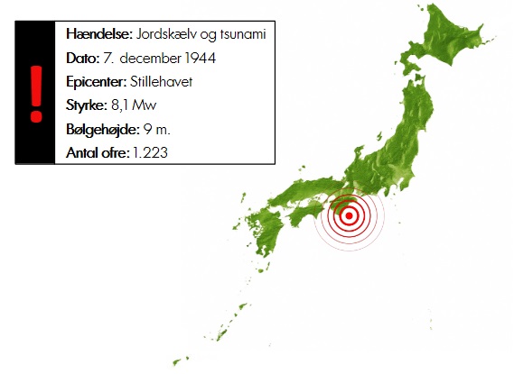 Den 21. december 1946 opstod et jordskælv ud for Kii-halvøens sydlige kyst, hvilket havde en styrke på mindst 8,1 på momentmagnitudeskalaen. De voldsomme rystelser varede ved i flere minutter og førte til store ødelæggelser i de omkringliggende egne, hvor det gik værst ud over Kochi-præfekturet på Shikoku, hvor næsten halvdelen af de mere end 11.000 ødelagte bygninger på landsplan befandt sig, og fordi jordkælvet ramte klokken 4.19 om morgenen, så lå de fleste stadig i deres senge og sov, hvorved mange enten blev mast ihjel eller fanget i murbrokker.