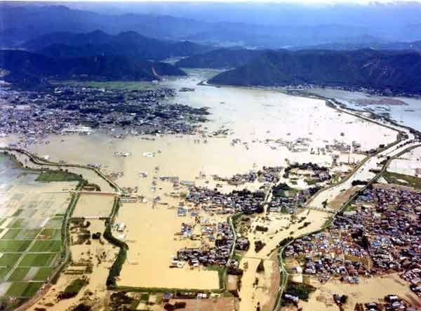 Dette førte selvsagt til oversvømmelser, da floder gik over deres breder, mens man i flere dele af landet oplevede jordskred, som begravede bygninger, mens endnu flere blev ødelagt af vandskader. Mens 1.669 bygninger blev totalskadet, så blev mere end 430.000 hjem oversvømmet, så over 300.000 mennesker kortvarigt blev hjemløse. De store mængder vand var ydermere med til at ødelægge veje, jernbaner, broer samt tusindvis af hektar landbrugsjord, som længe stod under vand, så folk i små landsbysamfund var isoleret i flere dage efter katastrofen. Mange måtte endda reddes væk fra deres tag med brug af helikoptere, fordi deres hjem stod under vand. I alt 171 mennesker endte dog med at omkomme, og dette var således den dødeligste tyfon i Japan i 10 år, mens ingen tyfon i Japan siden har krævet flere ofre.