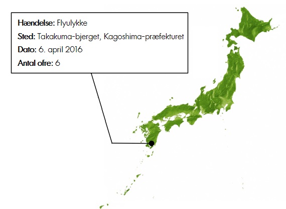 Om morgenen den 6. april 2016 ankom et tomotors redningsfly af typen U-125 til Kanoya-luftbasen i Kagoshima-præfekturet, hvor det efter planen skulle foretage en rutineøvelse med en besætning bestående af seks mand. Flyet tilhørte det japanske forsvar og blev blandt andet brugt til eftersøgninger og redningsmissioner, men desværre ville flyet selv ende med at blive en del af en ulykke, da det omkring klokken 14.30 lettede og umiddelbart efter styrtede ned på Takakuma-bjerget, hvor det eksploderede og brød i brand.