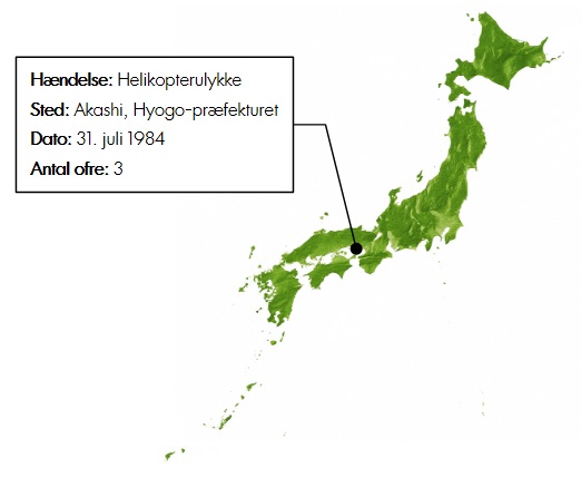 Den 31. juli 1984 blev en virksomhed i byen Akashi nær Kobe udsat for et røveri kort før middagstid, hvor røverne slap afsted med 6,7 millioner yen. Politiet blev omgående tilkaldt, og jagten på gerningsmændene gik ind. For at dække begivenhederne valgte de japanske medier at følge sagen tæt, og da der på dette tidspunkt var hård konkurrence mellem de japanske massemedier, blev alt sat ind, hvilket betød, at journalister fra to af landets største aviser, Asahi Shimbun og Mainichi Shimbun, besluttede sig for at dække sagen fra luften ved at flyve over Akashi i hver deres helikopter. Mens man hos Mainichi Shimbun benyttede sig af sin egen helikopter, så valgte man hos Asahi Shimbun derimod at leje en i stedet.