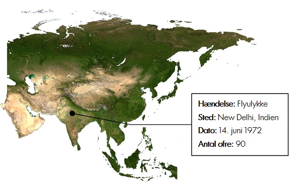 Den 14. juni 1972 lettede Japan Airlines Flight 471 fra Don Mueang Lufthavn i Bangkok i Thailand med retning mod New Delhi i Indien. Ombord på flyet var i alt 89 personer fordelt på 11 besætningsmedlemmer og 78 passagerer. Turen forløb problemfit, men da flyet begyndte at gøre klar til landing i New Delhi kort efter klokken 20, styrtede det imidlertid ned cirka 25 kilometer fra lufthavnen, hvor det faldt fuldkommen fra hinanden, da det ramlede mod jorden. Kun 3 mennesker ombord på flyet endte med at overleve styrtet, mens 86 andre omkom, men hertil kom yderligere 4 dødsfald, idet flyet var styrtet ned på en byggegrund, hvor en gruppe arbejdere derfor mistede livet, og det endelige dødstal nåede dermed op på 90.
