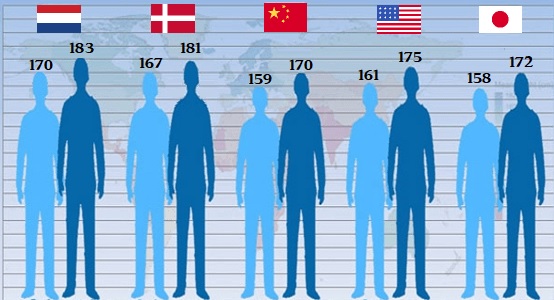 Gennemsnitshøjden i Japan foretog en stor stigning i efterkrigstiden, så den for mændenes vedkommende i dag ligger på cirka 172 centimeter, mens den hos kvinderne befinder sig omkring 158 centimeter. Japanere er således omkring samme højde som kineserne, mens de er cirka 10 centimeter lavere end danskerne. Væksten hos japanske drenge og piger er nogenlunde identisk indtil tolvårs-alderen, hvor drengene overhaler pigerne, og når japanerne runder 75 år, vil de i gennemsnit være krympet omkring 8 centimeter, hvilket også er forklaringen på, at gennemsnitshøjden i Japan har været nogenlunde stabil de seneste par årtier, hvor Japan er blevet et ældresamfund.