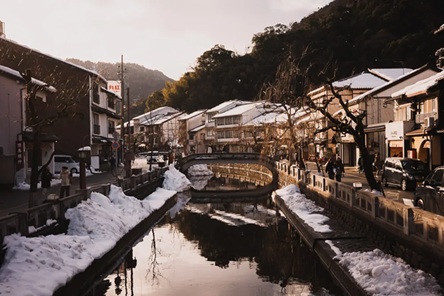 Kinosaki Onsen er en af Japans mest stemningsfulde onsen-byer og er kendt for sin velbevarede, traditionelle atmosfære. Byen er opbygget omkring en kanal med piletræer, hvor besøgende går rundt i yukata og besøger de forskellige offentlige bade til fods. I stedet for at blive på ét hotel er det netop meningen, at man bevæger sig mellem byens flere badehuse, hvilket giver en særlig oplevelse af variation og fællesskab. Kinosaki Onsen er derfor blevet kendt som en decideret onsen-by, hvor de varme kilder er en del af byens historie og kultur.